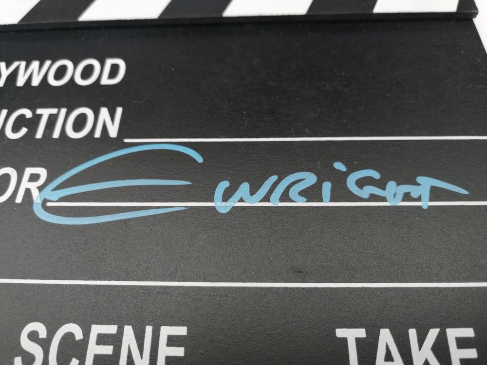 Signed wooden clapperboard (20cmx18cm) by Director EdgarWright in blue paint pen